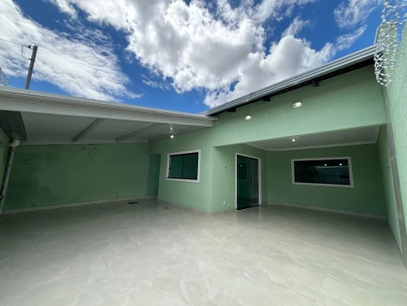 Casa com área na frente com espaço para 2 carros , acabamento prêmio bancada da cozinha e granito porcelanato, suíte com muito espaço e duas suítes am