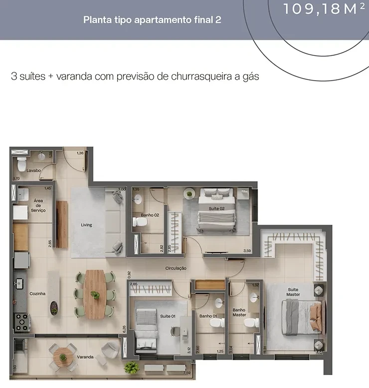 - 3 quartos / 3 suítes