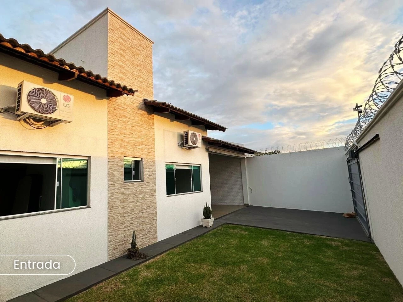 ito sistema de segurança (câmera Intelbras Full HD 360* portão eletrônico interfone, concertinas jardim de inverno com grama sintética ducha com piso